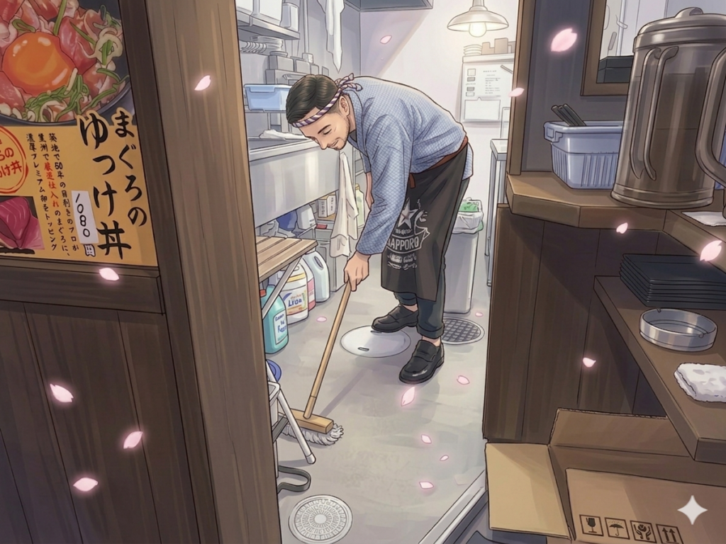 店内の片付けと、明日のセッティング、キッチンの清掃が終われば退店します。